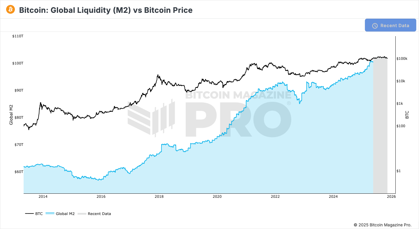 Aşağıdaki grafikte de görebileceğin gibi, Bitcoin ile Global M2 birbirine oldukça benzer hareket eder.