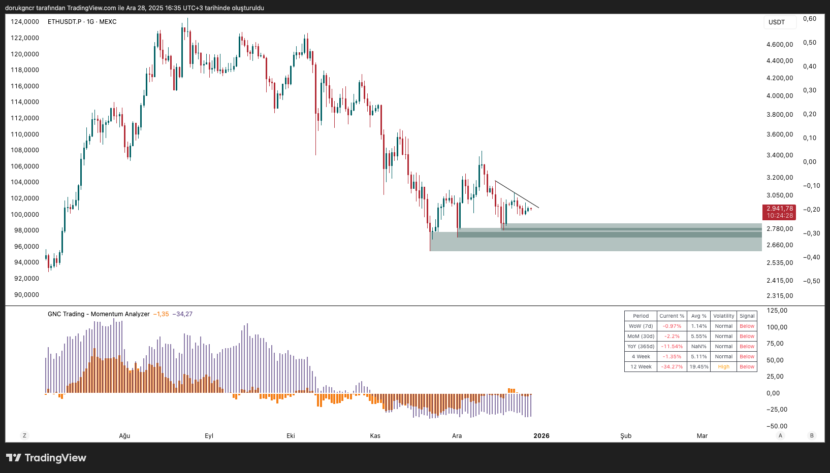 Kripto para piyasalarının yükselişini baskılayan bir durum ise, yüksek kaldıraçlı işlemlerdir. Yazının yazıldığı tarih itibariyle (28 Aralık 2025) Ethereum long short ratio: %70 long %30 short yönünde.